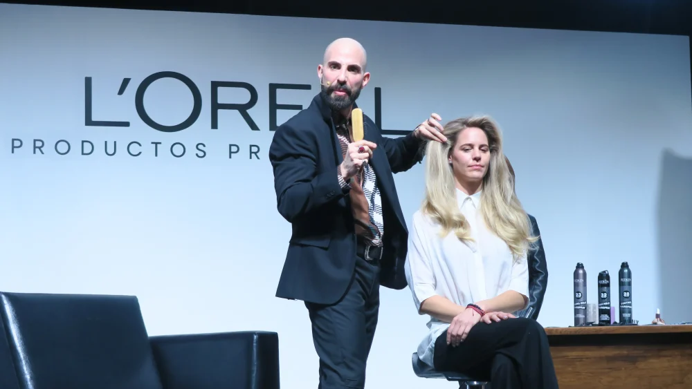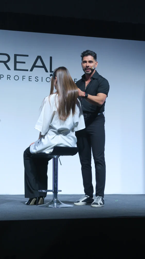 A continuación, el estilista y educador colombiano, Sebastián Guzmán realizó una demostración técnica en vivo. El estilista colombiano mostró técnicas de coloración sin amoníaco con L’Oréal Professionnel.