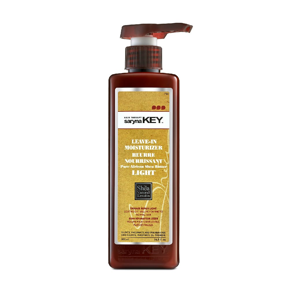 Damage repair light leave-in moisturizer (Hidratante ligero sin enjuague reparador de daños) de Saryna Key está hecho para hidratar, suavizar y controlar el frizz del pelo fino. Es muy útil para desenredar el cabello.